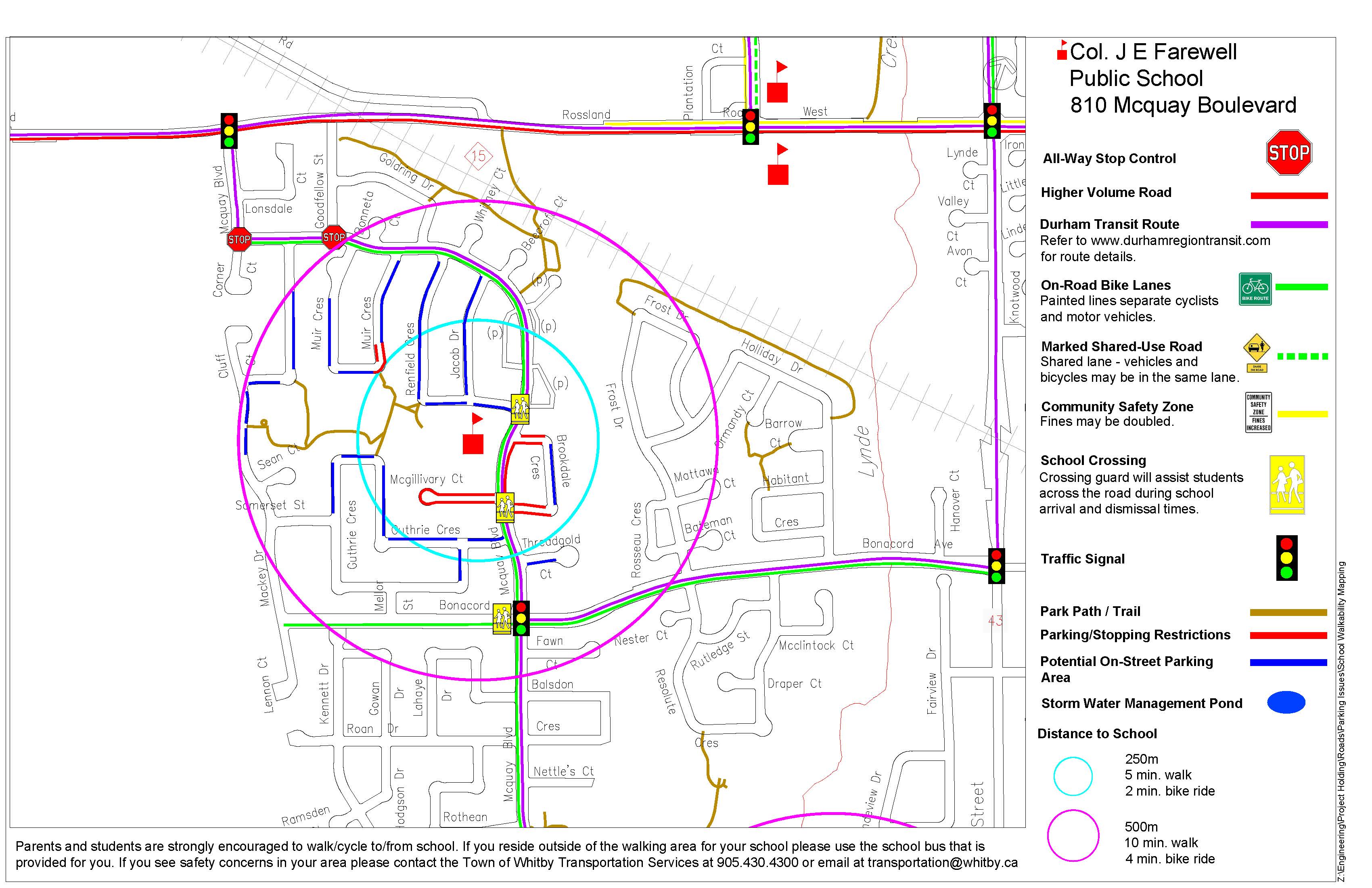 Help us support a culture of respect and harmony by adhering to school bus and transportation safety rules. The school’s parking lot is designed for DDSB staff, school busses and cars with a blue accessible parking permit displayed in the front dash from 8:30am to 9:05am and in the afternoon from 3:00pm to 3:40pm. The parking lot is CLOSED to parent drop off and pick up from 8:30am to 9:05am and 3pm to 3:40pm.