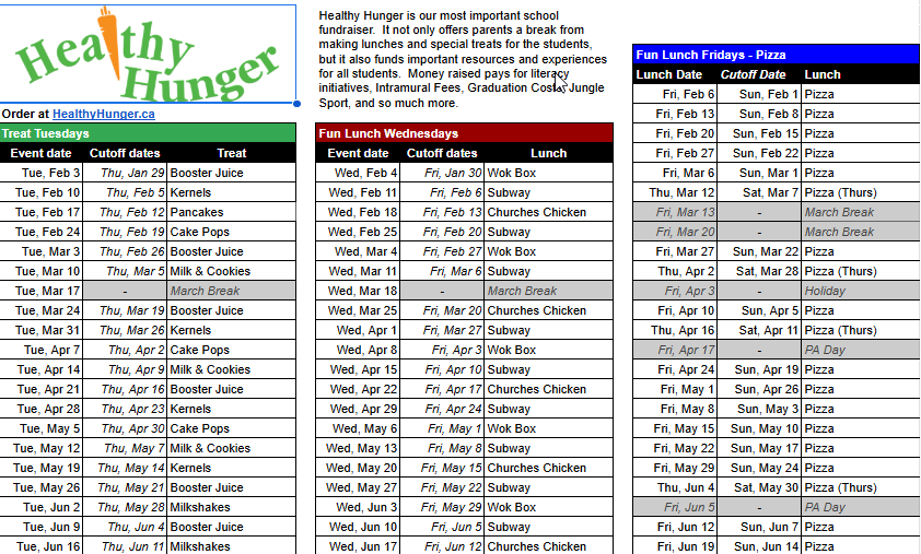 What to do if your student is absent on Lunch or Treat Day?Please email coloneljefarewellps@ddsb.ca by 10:00AM to arrange to either: